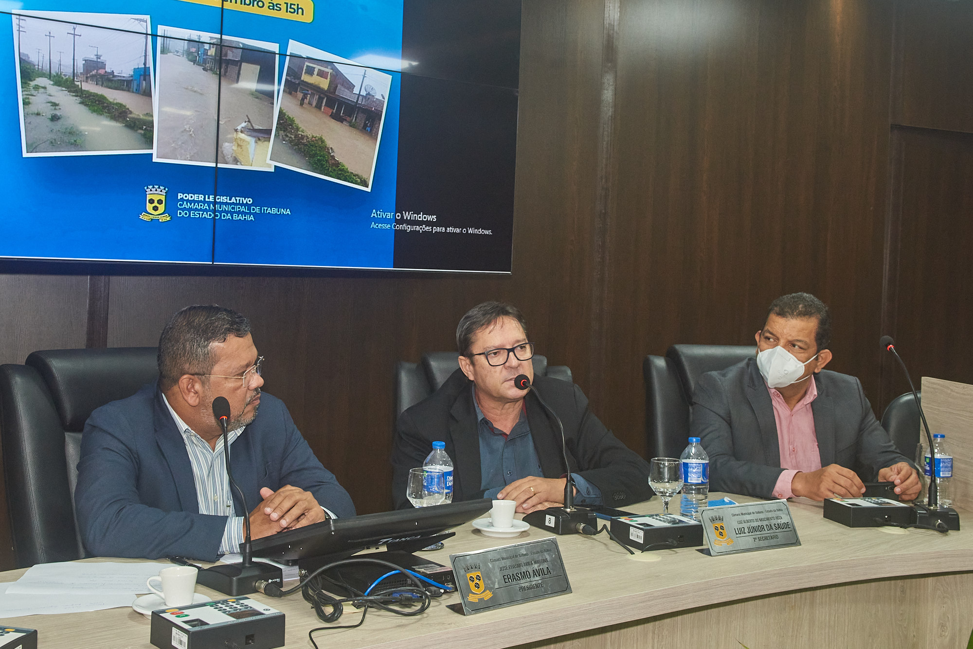 Pela Prefeitura de Itabuna, discursaram a secretaria de Planejamento, Sônia Fontes; o superintendente de Serviços Públicos, Sousa Lino; e os coordenadores Kaique Brito (Defesa Civil) e Rosivaldo Pinheiro (programa Recicla Itabuna). Em síntese, o Governo informou que monitora áreas alagáveis, recolhe resíduos sólidos em domicílio e desobstrui canais. A Prefeitura reconhece que o sistema de microdrenagem precisa de reformas. A gestão municipal busca financiamento internacional para obras de drenagem urbana.