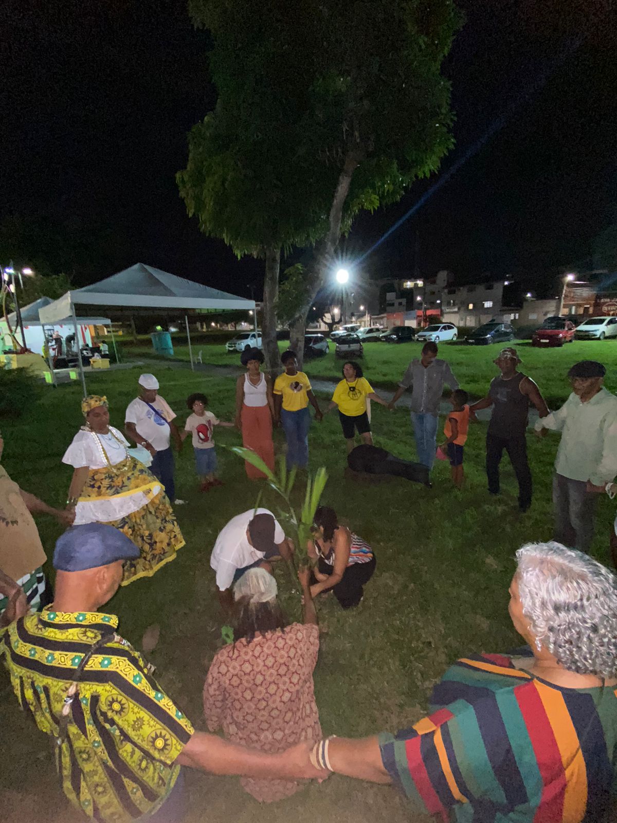 Um dos momentos mais simbólicos da noite foi o plantio do dendezeiro, que representa esperança e conexão com as raízes ancestrais.