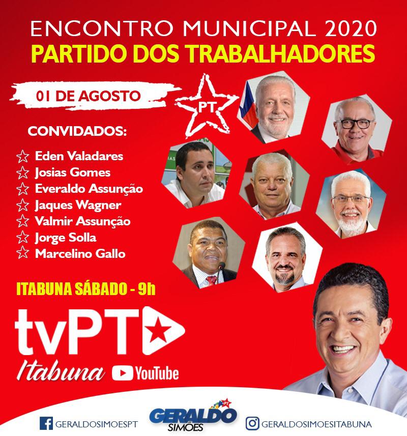 O Encontro ocorrerá de forma remota e será transmitido ao vivo pela TV PT Itabuna, no YouTube, por meio da plataforma Zoom.